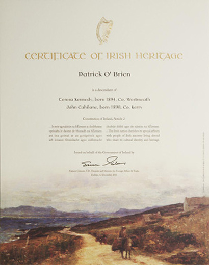 Certificate of Irish Heritage is now available for Americans of Irish ancestry
