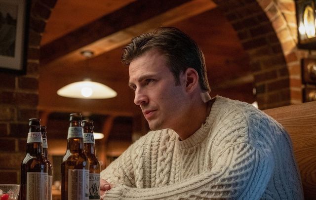 The Twittersphere is going wild for Captain America, aka Chris Evans, wearing a cream Aran sweater in the new detective caper "Knives Out."