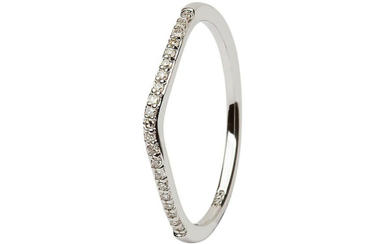 This stunning 14-karat white gold wedding ring from Shanore features a Claddagh design (love, loyalty & friendship) and pave set diamonds.