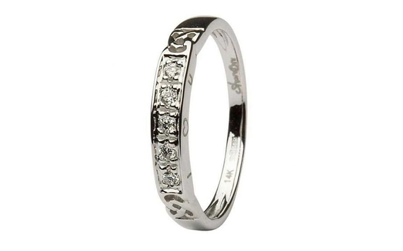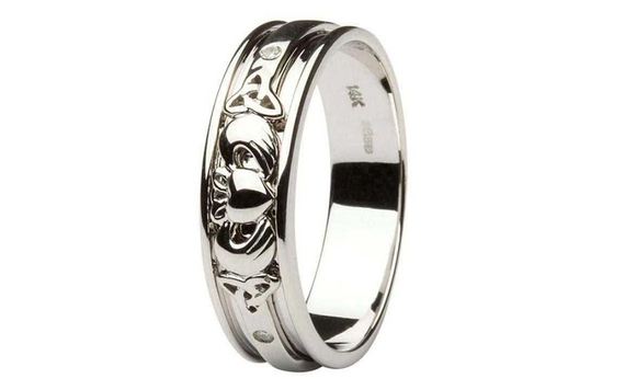 Claddagh diamond set ladies wedding ring with Celtic knot work