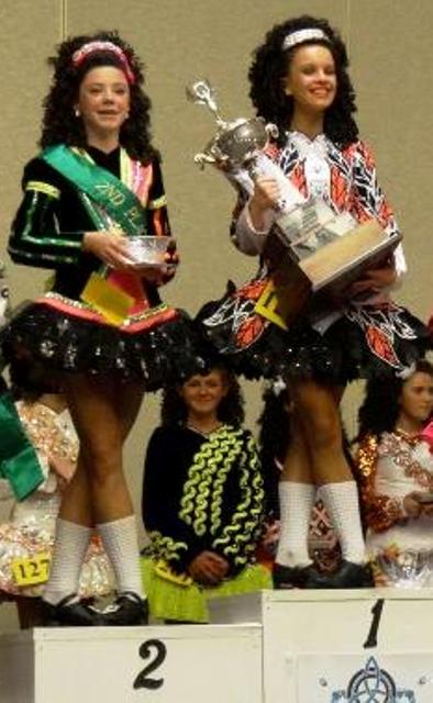 | Aine Claire Sheehan from McDade-Cara pictured here at the Mid-Atlantic Regional Irish Dancing Championships with Champion Melanie Valdes Photo Shamrock Photo |