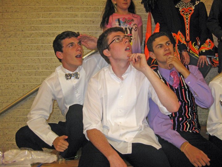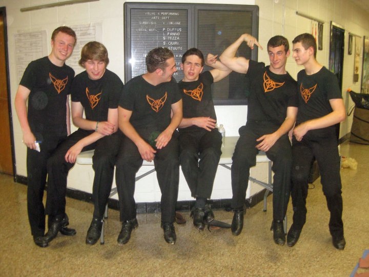 Backstage at the 2011 Broesler Recital before performing Riverdance's Thunderstorm Nick Paulson, Greg Tyler, Kevin Emsworth, Ryan Thornton, and Tim Ryan with Lockie Photo:Jean Schule |