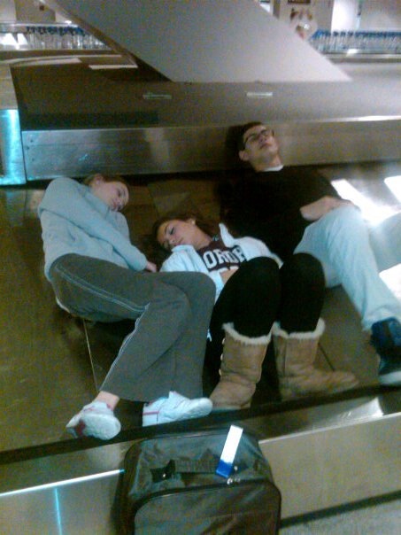 Lockie spending the night at the airport in Boston with Paige Turilli and MaryKate DiChiarra Photo: Heidi Nidds |
