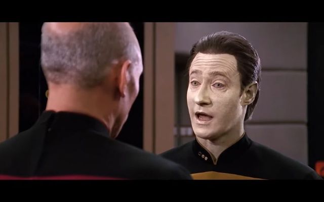 Picard sighs and says: "Data, these are questions that mankind have been struggling with throughout history. Your confusion is only human."