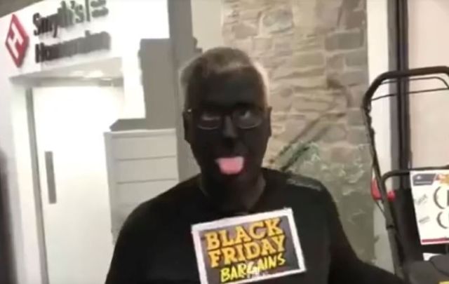 In November, Smyths Homevalue shared an advertisement on their Facebook page that featured the shop’s owner with his face and hands painted black ahead of the shop's Black Friday sales.