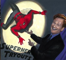 Offering a lesson in frugality Conan's version looks to be a lot more cost effective with a little boy's Spider-Man costume and the use of Silly String instead of webs.