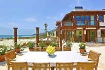 “This magical seaside estate designed by Ralph and Ross Anderson features contemporary Thai/Balinese architecture, soaring ceilings, walls of glass, lush tropical gardens, three master suites, a dozen bathrooms, well-appointed his and hers dressing rooms, and gourmet kitchen.”