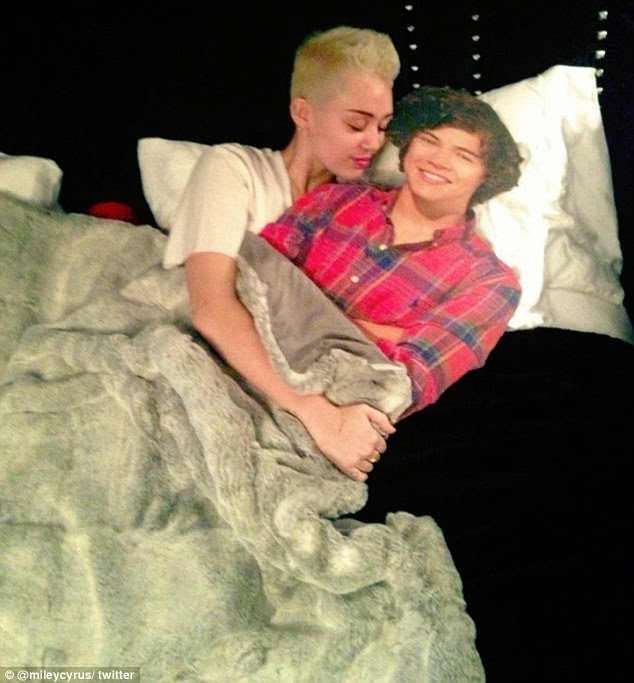 The boy band - which includes Zayn Malik, Louis Tomlinson, Harry Styles, Liam Payne and Niall Horan - joined the 'Wrecking Ball' hitmaker at Beacher's Madhouse in Los Angeles after appearing at the American Music Awards.
