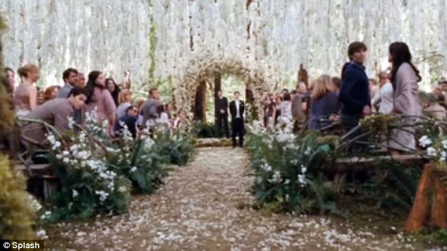 But eager fans will have to wait a bit longer to see Bella Swan’s wedding dress. During the filming of the scene, a huge operation was in place to stop prying eyes. Tarpaulins, huge marquees, road blocks and armed police were all in place to stop anyone getting a look at the wedding dress.