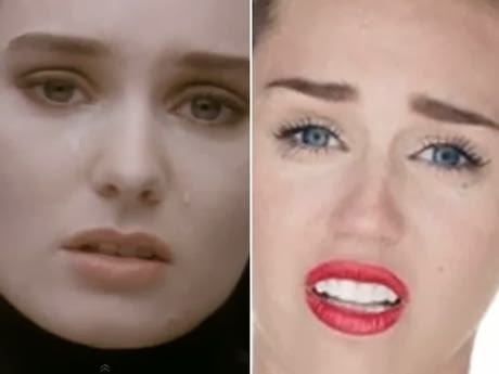 Here are Miley’s “Wrecking Ball” and Sinead’s “Nothing Compares 2 U” videos.