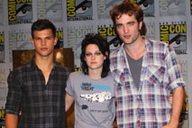 | Twilight stars Taylor Lautner Kristen Stewart and Robert Pattinson at Comic Con in 2009 |