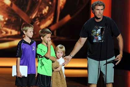 However, 'The Campaign' star appeared to be flustered as he presented the two awards, which concluded the lengthy three-hour show, because his offspring continuously interrupted him while he gave his speech.