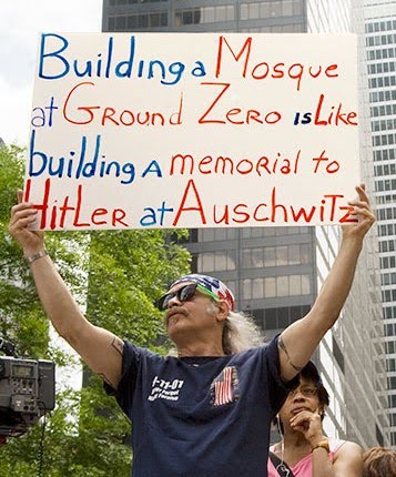 'What just happened is like spraying swastikas all over a Jewish memorial,' said Andy Sullivan, a construction worker at Ground Zero during 9/11. Well no in fact it isn't, Andy, and it's quite important to point that out.