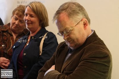 This is an impromptu shot of Breandán Ó Caollaí at the ceremony honoring him for his commitment to promoting and supporting Irish learners in the United States. It was a big turn-out, as he has made many friends since his arrival.