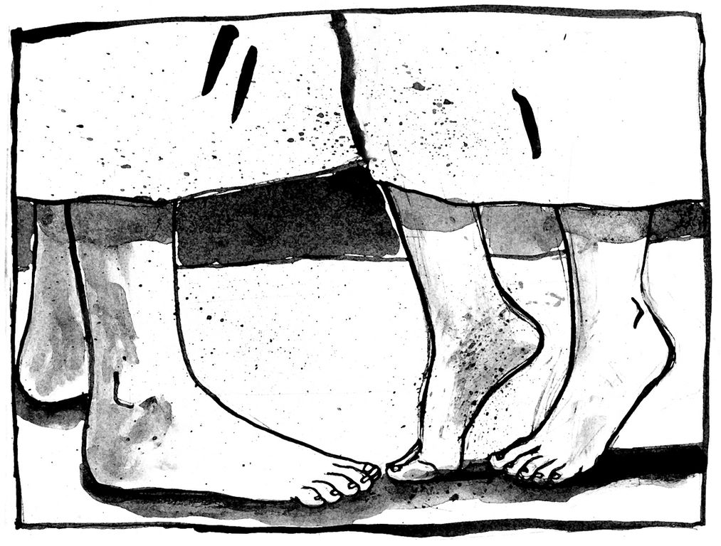 It had been raining heavily all of their stay, the stones were slippery as hell, the midges were biting madly, her feet were bleeding and her face swollen up from insect bites.
