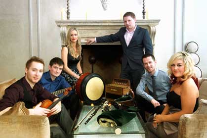 Led by one of Ireland’s leading young fiddlers, Michael Harrison from Tipperary, and percussionist Eamon Moloney also from Tipp, it includes box player Janine Redmond from Dublin along with guitarist Andrew Meaney, uilleann piper Martino Vacca (who replaced Sean McCarthy in the original group) and singer/flutist Teresa Horgan.
