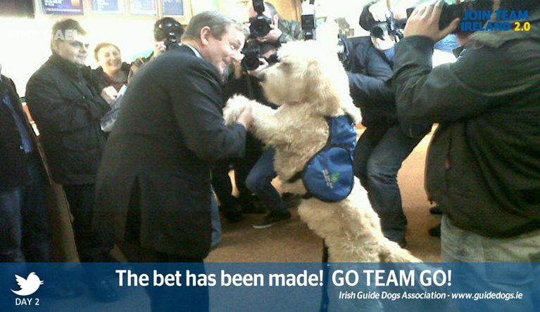 The man who looks set to become Ireland’s new leader, Enda Kenny got up, close and personal with a four-legged friend on the campaign trail recently.