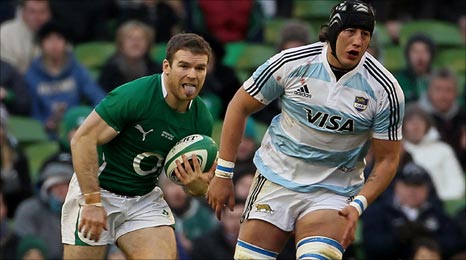 When the ball came back from a ruck inside the Argentine 22 under the posts Tommy Bowe drew the tackle before offloading to Jamie Heaslip who in turn found Ferris. After Sexton converted, to make it 10-0, former Leinster man Contepomi missed a penalty as Argentina failed to register a score that would drive Argentina forward.