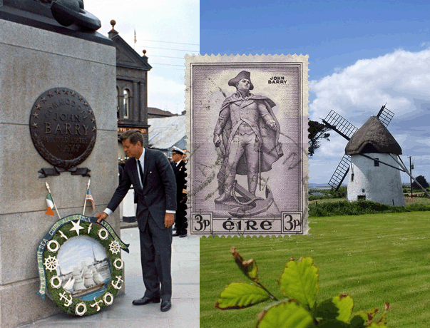 The founder of the American navy, for example was Commodore John Barry, from Tacumshane in Wexford (a place known for windmills in his day). President Kennedy was a navy hero himself, and laid a wreath in Tacumshane to honor the special relationship between Ireland and the United States.