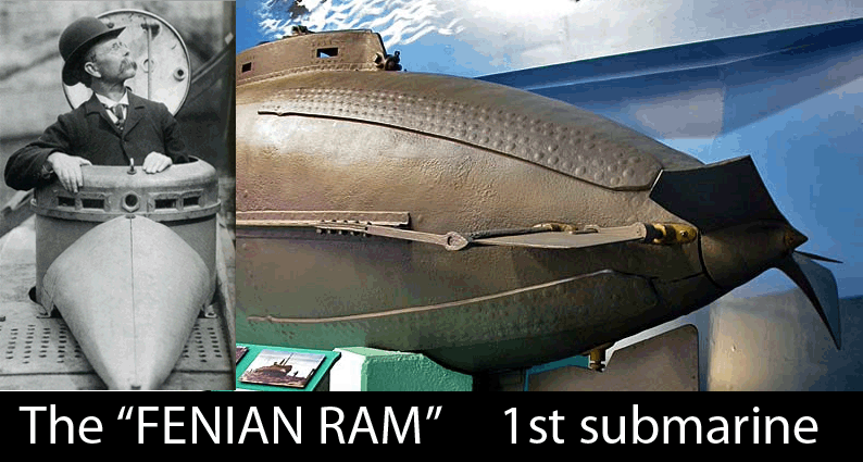 The first submarine was an Irish prototype the Fenians funded, and was followed by six more models, all by JP Holland. The US military took up funding, where the Irish ran out, so that by the turn of the century, the Irish invention had become a staple of the American submarine war machine.