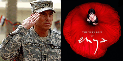There is no peace movement today, but there is Enya singing in General Petraeus' ear. I honestly don't know what to make of it.