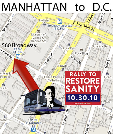 The author promised buses-for-everybody from Manhattan to DC on Saturday morning, October 30th, leaving from 560 Broadway---that sweet-spot between the Puck Building and Old St.Patrick's in SoHo.