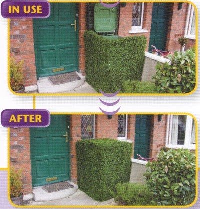 Later on, each time the image of the hidbin popped into my head I chuckled to myself. Were there really people out there who were so embarrassed by the fact that they had a garbage can (in Ireland, your "bin" is your trash can, so hidden bin or hidbin. See?) that they felt they needed to pay $128 (€99) to surround it in fake, plastic bush leaves?