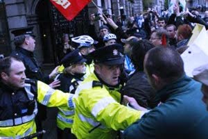 In fact it was very different, because it ended in violent clashes between the protestors and the Gardai (police) lined up outside the gates of the Dail. The protestors attempted to storm the gates and fight their way inside the Dail. The Gardai drew their batons and fought back.