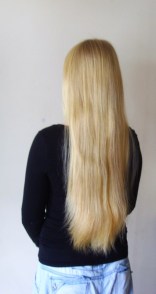 She goes on to describe she washes it “2/3 times a week”. She adds that she never straightens, perms, dyes or uses any chemicals or sprays on her hair.