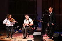 Martin Hayes with piper David Power and singer Iarla O'Lionaird with Masters of Tradition. |