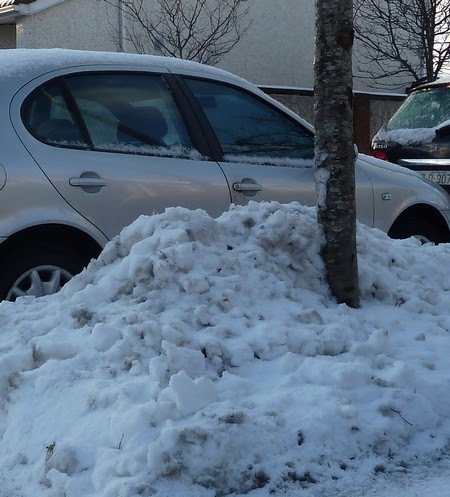 Somewhere along the way, the picture post card scenery and sounds of children laughing and playing wore out for Irish people. Of course, the roads were never properly cleared, although at least there was extra sand and salt around for treating the roads compared with last winter's snow debacle. The sidewalks are this evening a slushy, icy mess that will probably - if the recent trend holds - be frozen solid come morning time. Nobody's looking forward to that.