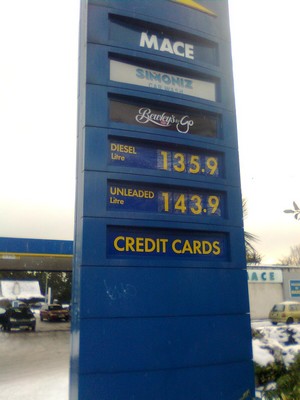 As you know, gas prices have been climbing steadily. I was in America for a 12 days after Christmas. I paid around $3.25 per gallon in upstate New York, which is by no means cheap. However, it doesn't come close to the price we're paying for gas here in Ireland.