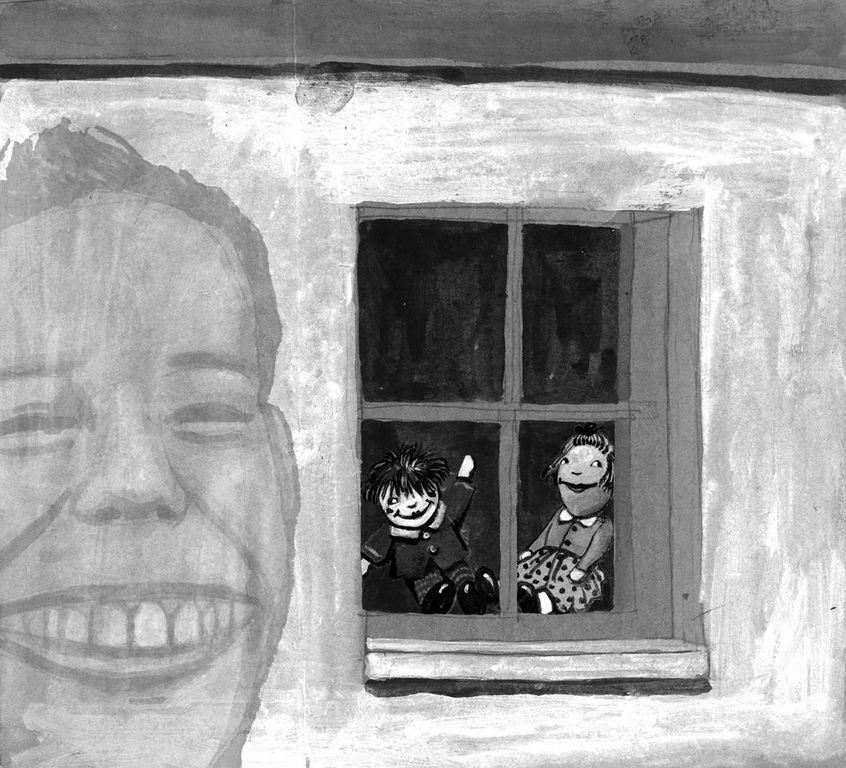 They are pale-faced, smiling golliwogs of the brightest of colors, stuffed with straw, exquisitely stitched together, crafted from whatever materials were to hand in Jimjoejoe's home from the 1950s of the last century onwards.