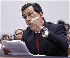 Stephen Colbert, who testified in Congress on Friday regarding an immigration bill, is well-known for his satirically conservative persona on Comedy Central's The Colbert Report. He arrived in Congress, fully in character, to testify about a day he spent (on camera, for his show) working alongside migrant laborers in a bean field.