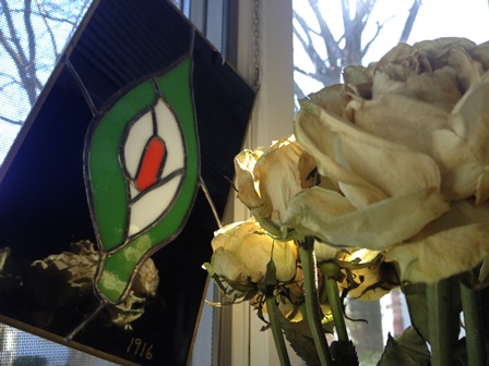 The white roses with the deep green tint I gave Honey Badger for Saint Patrick’s Day faded just a bit slower than our month-long Irish marching season here in New Jersey.