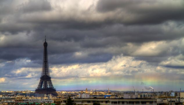 | A horizontal rainbow pictured above the Paris skyline (Photo: Bertrand Kulik) |