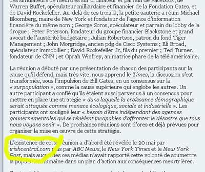 IrishCentral.com broke a BIG story a coupla weeks ago about a bunch of billionaires getting together to tell jokes about poor people and play "Twister." (Now, the poor-people jokes and "Twister" facts are still being checked out by my cub reporters, but there's no doubt whatsoever about this rich guy's meeting.)