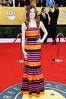Meanwhile, Marc by Marc Jacobs took a different silhouette in the form of his silk bumblebee trapeze dress in black and yellow, taking the shape of a balloon. Vivienne Westwood also used a more voluminous outline for her Gold Collection which featured a vertical rainbow ribbon and black lines, cinched at the waist with a black tied belt.