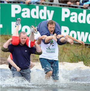 A married couple from Co Kerry took home the prize of $1,400 for first place in the Paddy Power National Wife-Carrying championship.Anthony and Frances Greaney who wed nine years ago, were among the few married in the 18 couples race - as marriage is not a requirement to compete.