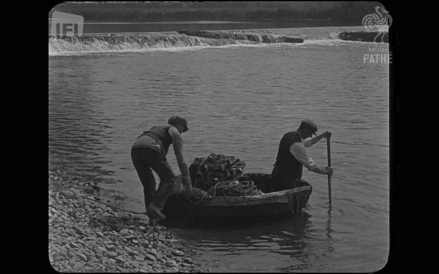 Men then push the coracle out onto the River Boyne and lay fishing nets. The intertitle tells how the Boyne is ‘the only place in Europe where such hide boats are still in use’.