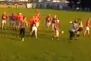 About ten minutes into the game, a crazed man ran on to the pitch and hit Barrett flush on the back with a hurley.