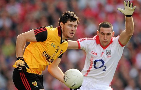 Down target Martin Clarke, (above), was well-policed by the Cork defense, especially marker Noel O'Leary and never played his expected big game.