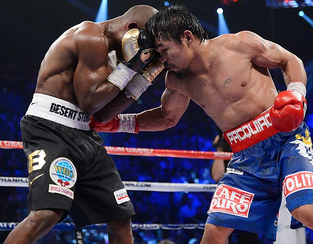 - Round 6: Bradley lands a soft left, but it doesn't hurt Pacquiao, whose speed is overwhelming the challenger. Bradley flinches every time Pacquiao so much as feigns a punch. Pacquiao gets off a good left counterpunch.