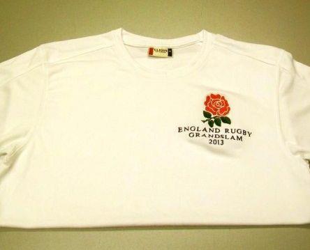 Lately, whenever England gets in sight of The Six Nations Grand Slam title, they go a little wobbly in the knees and also in the brain department. How about this lovely little shirt, available on the Internet, which those in authority in English Rugby thought would be a super idea. They probably should have waited, no?