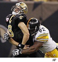 Well, he can’t say they didn’t warn him. Let’s just say it is pretty obvious to everyone in the game, from fans to players, that the NFL is not going to tolerate late, cheap, dirty hits this season. So what does the Steelers James Harrison do, two weeks after being fined for a dirty hit? Naturally, he hits Drew Brees, in the back, late, with his helmet. Earth to James, come in, is there anybody awake in there? After his initial fine, Harrison threatened to retire, arguing pathetically that he didn’t know how to play the game anymore. We can only hope that the NFL slams him with a huge fine for this hit, and he keeps his word and retires, because there is no place in the game for cowardly thugs like that. There is no nobility in a late hit, from behind, to a defenseless players back, James. Go ahead and retire, we won’t miss you.
