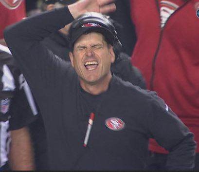 Wonderful! Absolute sheer NFL bliss. With last night's NFL results we are in for a serious treat the next couple of weeks. Can you imagine what the pre-Superbowl coverage is going to be like? Endless (and we mean endless) stories battering every single angle of the Harbaugh v Harbaugh story into a bloody submission. By the time the Superbowl kicks off you and I are going to know what colour boxer shorts Jim likes best and which episode of 'Greys annatomy' was John's favourite. Ray Lewis? You thought that narcissistic close up of a weeping, sobbing, over-emoting Ray Lewis during the anthem last night was something, well, wait until you are picking pieces of Ray Lewis off your mind like last night's steak out of the cracks in your teeth. We are in for more Ray Lewis the next two weeks than you could ever imagine.
