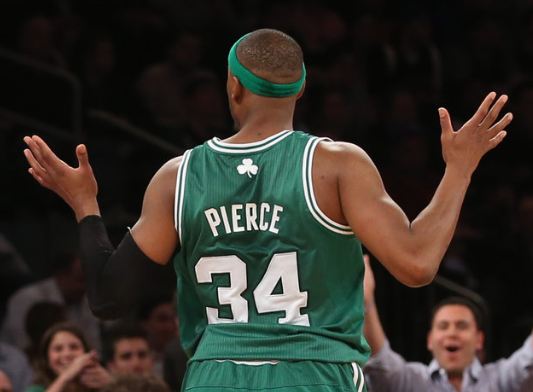 Madison Square Garden enjoyed some school yard basketball at its finest last night. The Boston Celtics came to town and Captain Paul Pierce led his team to a thumping 102-96 win over the New York Knicks, leaving the latter so frustrated that one of its stars morphed into a 15 year old bully. To say ‘Carmelo Anthony and Kevin Garnett got into an altercation’ is a little facetious as basically what happened was Melo decided to wait for Garnett at the Celtics team bus. See image below, and Comcast Sports Net New England has the 50 second video which is pretty funny to watch, we have that for you below also.